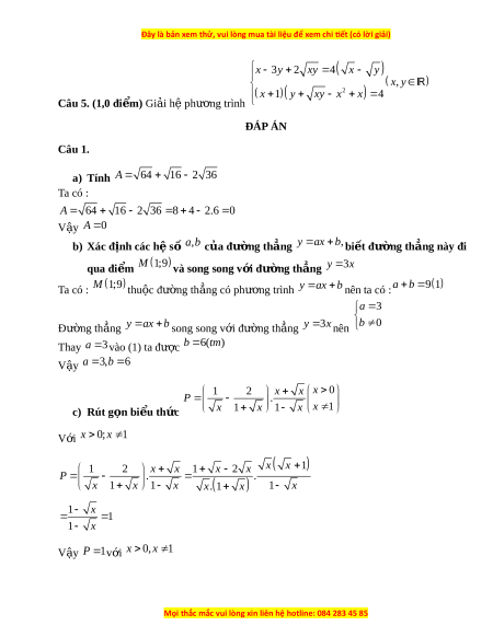 Đây là bản xem thử, vui lòng mua tài liệu để xem chi ết (có lời giải)