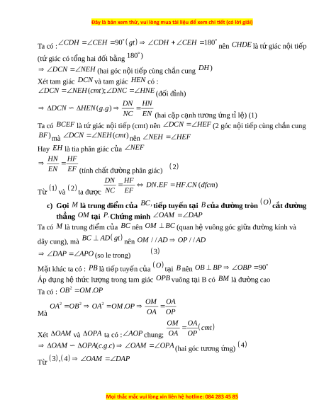 ủ CF và DE. Ch ng ứ minh DN.EF H F.CN c) G i ọ M là trung đi m ể c a ủ BC, ti p t ế uy n t ế i ạ B c a ủ đư ng t ờ ròn O c t ắ đư ng ờ th ng ẳ OM t i ạ . P Ch ng ứ minh O AM DAP