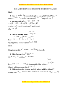 Ỉ H NINH BÌNH MÔN TOÁN 2021 Câu 1. 1) Hàm số y 2