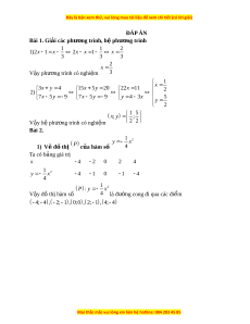 1)2x 1x 2x x 1 x 3 3 3 2 x V y ậ phư ng t ơ rình có nghi m ệ 3 1 3 4 15 5 20 22 11 x x y x y x 2 2) 7x 5y 9 7x 5y 9 y 4 3x 5 y 2 1 5 ; x y ; V y ậ h ph ệ ư ng t ơ rình có nghi m ệ 2 2 Bài 2. 1 2 y x 1) V đ ẽ ồ th