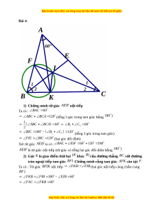 giác trong BE,CF c a ủ tam giác ABC c t ắ nhau t i ạ I 1) Ch ng ứ minh t gi ứ ác AEIF n i ộ ti p ế 2) G i ọ K là giao đi m ể th hai ứ