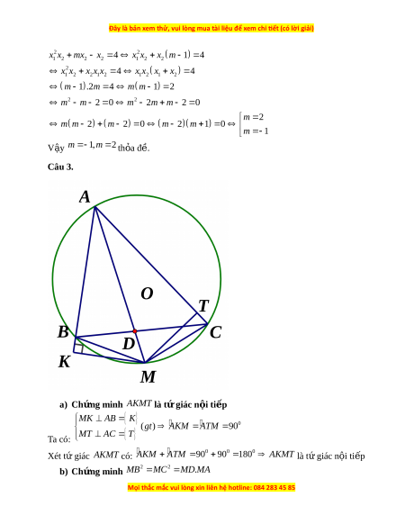 x mx x 4 1 2 là hai nghi m ệ c a ph ủ ư ng ơ trình. Tìm m đ ể 1 2 2 Câu 3. (3,0 đi m ể ) Cho AB C có 3 góc nh n n ọ i ộ ti p đ ế ư ng t ờ