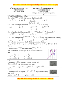 ờ gian làm bài: 120 phút, không k gi ể ao đề I.TRẮC NGHI M ( Ệ 3,00 đi m ể ) Câu 1. V i ớ x 0 thì bi u t ể h c nào s ứ au đây luôn có nghĩa ? A. 2 x B. x 2 C. 2x D. 2x 2 5 2 5