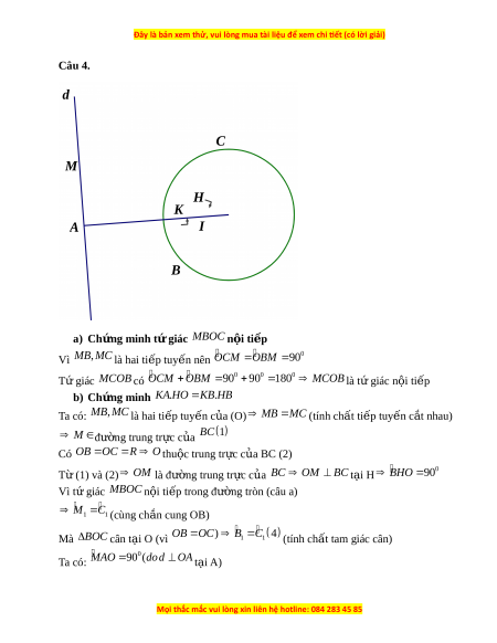 ể ; B và M khác phía v i ớ đư ng ờ th ng ẳ O ) A a) Ch ng ứ minh t gi ứ ác MBOC n i ộ ti p t ế rong đư ng t ờ ròn