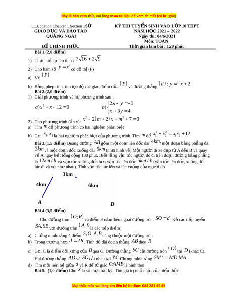 111Equation Chapter 1 Section 1SỞ KỲ THI TUY N Ể SINH VÀO L P Ớ 10 THPT GIÁO D C Ụ VÀ ĐÀO T O Ạ NĂM H C Ọ 2021 – 2022 QU N Ả G NGÃI Ngày thi: 04/6/2021 Môn: TOÁN Đ C Ề HÍNH TH C Ứ Th i