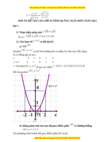 Ỉ H QUÃNG NGÃI MÔN TOÁN 2021 Bài 1. 1) Thực hi n phép t ệ ính 7 16 2 9 Ta có : 7 16 2 9 7 .4 2.3 3 4 2