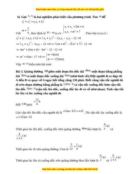 ơ trình. Tìm m để 1 2 1 2 Bài 3.(1,5 đi m) ể Quãng đư ng ờ AB g m ồ m t ộ đoạn lên d c ố dài 4k , m m t