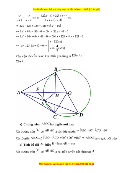 ế ông A và B là 32k . m M t ộ ca nô xuôi dòng t b ừ n ế A đ n b ế n ế B r i ồ l p ậ t c quay v ứ b ề n ế A. K t ể l ừ úc kh i ở hành đ n l ế úc v t ề i ớ b n ế A h t ế t t ấ c 6 gi ả . ờ Tính v n ậ tốc c a ủ ca nô khi nư c ớ yên l ng, ặ bi t ế v n ậ tốc dòng nư c l ớ à 4km / h Câu 4. (3,5 đi m ể ) Cho đư ng t ờ ròn ;