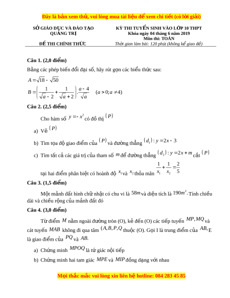 ệ xem ể chi ti t ế (có l i ờ gi i ả ) SỞ GIÁO D C Ụ VÀ ĐÀO T O Ạ KỲ THI TUY N Ể SINH VÀO L P Ớ 10 THPT QU N Ả G TRỊ