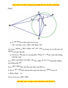 ậ có chu vi là 58mvà diện tích là 2 190m . Tính chi u ề dài và chi u r ề ng c ộ a m ủ nh ả đ t ấ đó Câu 4. (3,0 đi m ể ) T đi ừ m ể M n m ằ ngoài đư ng ờ tròn (O), k đ ẻ n ( ế O) các ti p t ế uy n ế MP, MQ và cát tuy n