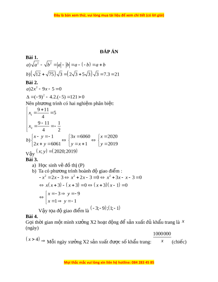Đây là bản xem thử, vui lòng mua tài liệu để xem chi ết (có lời giải)