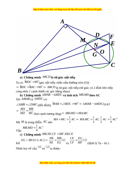 A MC AC. AC AC Mà M là trung đi m ể AC nên 2 2 2 4 1 2 M . B MD AC V y ậ 4