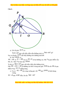 ể B, P, K th ng hàng ẳ c) Các ti p t ế uy n t ế i ạ A và C c a đ ủ ư ng ờ tròn O c t ắ nhau t i ạ Q, bi t ế BC . R Tính đ dài ộ