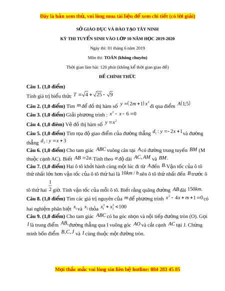 ệ xem ể chi ti t ế (có l i ờ gi i ả ) SỞ GIÁO D C Ụ VÀ ĐÀO T O Ạ TÂY NINH KỲ THI TUY N Ể SINH VÀO L P Ớ 10 NĂM H C Ọ 2019-2020