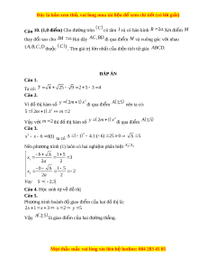 ộ C) . Tìm giá tr l ị n nh ớ t ấ c a di ủ n t ệ ích t gi ứ ác ABC . D ĐÁP ÁN Câu 1.