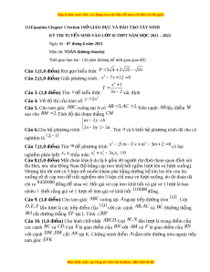 rình 2x by 2a . Tìm a và b bi t ế hệ phư ng ơ trình đã cho có nghiệm là 2; 1 2 2 Câu 7.(1,0 đi m