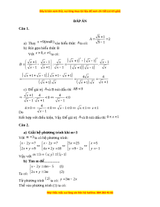 ĐÁP ÁN Câu 1. 9 1 A 2 a) Thay x 9 (tmdk) vào bi u t ể h c ứ A ta có: 9 1 b) Rút g n bi ọ u t ể h c B ứ V i ớ x 0, x 1 ta có: