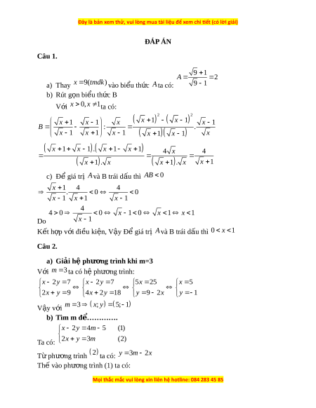Đây là bản xem thử, vui lòng mua tài liệu để xem chi ết (có lời giải)