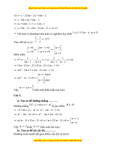 m 2 m 5 0 m 5 V y ậ m 2 ho c ặ m 5 th a ỏ mãn bài toán b) Tìm m đ ( ể d) c t ắ (P)………… Phư ng ơ trình hoành đ gi ộ ao đi m ể c a ủ (P) và (d) là :