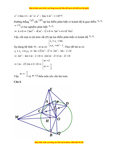 ể d đi qua đi m ể A1; 9 b) Tìm m đ ể d c t ắ P t i ạ hai đi m ể phân bi t ệ có hoành đ ộ x , x 1 2 th a ỏ mãn x x 2 x x 1 2 1 2 Câu 4. (3,5 đi m ể ) Qua đi m ể M n m ằ bên ngoài đư ng t ờ ròn ; O R , kẻ hai ti p ế tuy n ế M , A MB( , A B là hai ti p đi ế m ể ). V cát ẽ tuy n