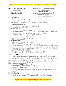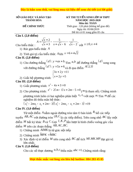 ệ xem ể chi ti t ế (có l i ờ gi i ả ) SỞ GIÁO D C Ụ VÀ ĐÀO T O Ạ KỲ THI TUY N Ể SINH L P Ớ 10 THPT THANH HÓA NĂM HỌC 2019-2020 Môn thi: TOÁN Đ C Ề HÍNH TH C Ứ
