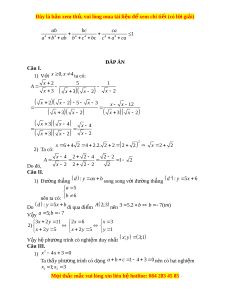 .2 b b 7(tm) V y ậ a 5 ;b 7 3 x 2 y 11 2x 6 x 3 2) x 2y 5 x 2 y 5 y 1 V y ậ h ph ệ ư ng t ơ rình có nghi m ệ duy nh t ấ ; x y 3; 1 Câu III. 1) 2 x 4x 3 0 Ta thấy phư ng t ơ rình có d ng ạ