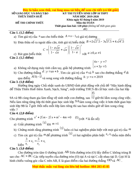 ệ xem ể chi ti t ế (có l i ờ gi i ả ) SỞ GIÁO D C Ụ VÀ ĐÀO T O Ạ KỲ THI TUY N Ể SINH L P Ớ 10 THPT THỪA THIÊN HUẾ NĂM HỌC 2019-2020