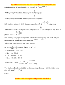 x 5 12x 14 7 12x 14 0 x (ktm) 6 V y n ậ u ế làm vi c m ệ t ộ mình thì l p 9A ớ làm xong công vi c t ệ rong 5 gi , ờ l p 9B ớ làm xong công việc trong 5 2 7 giờ Câu 4. M i