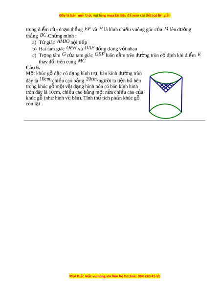 thay đổi trên cung MC Câu 6. M t ộ khúc gỗ đ c có ặ d ng hì ạ nh tr , bán kí ụ nh đư ng t ờ ròn