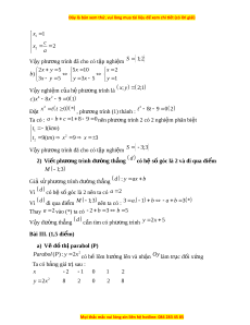 ẳ d cần tìm có phư ng t ơ rình y 2 x 5 Bài III. (1,5 đi m ể ) a) V đ ẽ ồ th parabol ị (P) 2