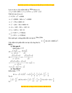 x 120 x 50 0 x 120 y 50( tm) x 50 y 120( tm) Hai c nh góc vuông ph ạ ần đất còn l i ạ là 50m,120m 1 S .50.120 3 000 2 m V y ậ di n t ệ ích ph n đ ầ t ấ còn l i ạ c a ông H ủ ai là : 2 Bài 4. 1) Rút g n B ọ Đi u ki ề ện: x 0 2 x x 2x x B 1 x x 1 x