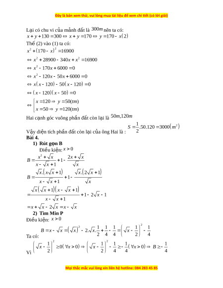 Đây là bản xem thử, vui lòng mua tài liệu để xem chi ết (có lời giải)