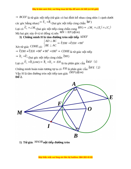 ứ minh MN / /EF 3) Ch ng ứ minh H là tâm c a ủ đư ng t ờ ròn n i ộ ti p t ế am giác DEF Đ 2 ề O Từ m t ộ đi m