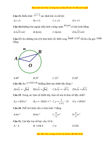 x 5 xác định khi và ch khi ỉ . A x 5 . B x 5 C.x 5 . D x 5 Câu 16.Đư ng ờ tròn ngo i ạ ti p hì ế nh vuông c nh ạ