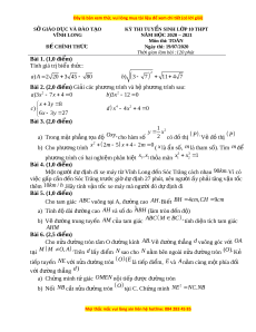SỞ GIÁO D C Ụ VÀ ĐÀO T O Ạ KỲ THI TUY N Ể SINH L P Ớ 10 THPT VĨNH LONG NĂM H C Ọ 2020 – 2021 Môn thi: TOÁN Đ C Ề HÍNH TH C Ứ Ngày thi: 19/07/2020 Th i