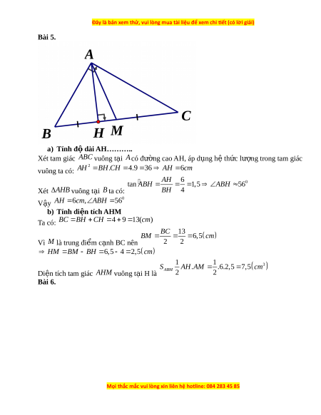 ệ ích tam giác AHM vuông t i ạ H là 2 2 Bài 6.