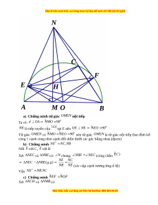 ể , E và A n m ằ cùng m t ộ phía đối v i ớ đư ng ờ th ng ẳ d) a) Ch ng ứ minh t gi ứ ác OMEN n i ộ ti p đ ế ược đư ng t ờ ròn b) Nối NB c t ắ n a ử đư ng t ờ ròn O t i ạ C. Ch ng m ứ inh 2