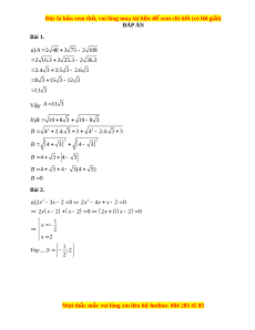 ệ xem ể chi ti t ế (có l i ờ gi i ả ) ĐÁP ÁN Bài 1. a)A 2 48 3 75 2 108 2 16.3 3 25.3 2 36.3 2.4 3 3.5 3 2.6 3 8 3 15 3 12 3 11 3 V y ậ A 1 1 3