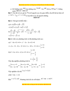 ộ à các số nguyên dư ng. ơ ĐÁP ÁN Bài 1. Tính giá tr b ị i u ể th c : ứ a)A 3 18 2 8 72 3 .3 2 2.2 2 6 2 7 2 2 3. 1 2 3 6 b) 2 3 2 3 1 2 1 2 3 2 3 2 Bài 2. Gi i ả các phư ng t ơ rình và h ph ệ ư ng t ơ rình sau : 2 2