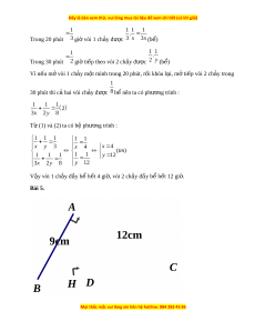 30 phút thì cả hai vòi ch y đ ả ư c ợ 8 b nên t ể a có phư ng ơ trình : 1 1 1 2 3x 2 y 8 T ( ừ 1) và (2) ta có h ph ệ ư ng t ơ rình : 1 1 1 1 1 x y 3 x 4 x 4 (tm) 1 1 1 1 1 y 12 3x 2y 8 y 12 V y ậ vòi 1 ch y đ ả y b ầ h ể t ế 4 gi , ờ vòi 2 ch y đ ả y b ầ h ể t ế 12 gi . ờ Bài 5.
