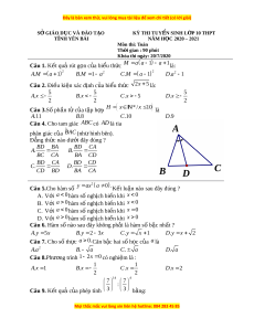 Khóa thi ngày: 20/7/2020 Câu 1. K t ế quả rút g n ọ c a bi ủ u t ể h c ứ M a a 1 a 1là: A M a 2 B M a C M a 2 2 2 . 1 . 1 . 1 . D a 1 Câu 2. Đi u ki ề n xác ệ đ nh c ị a ủ bi u t ể h c ứ 2x 5 là: 5 5 5 . A x . B x C.x 5 . D x 2 2 2 Câu 3.Số phần t c ử a t ủ p ậ h p ợ H