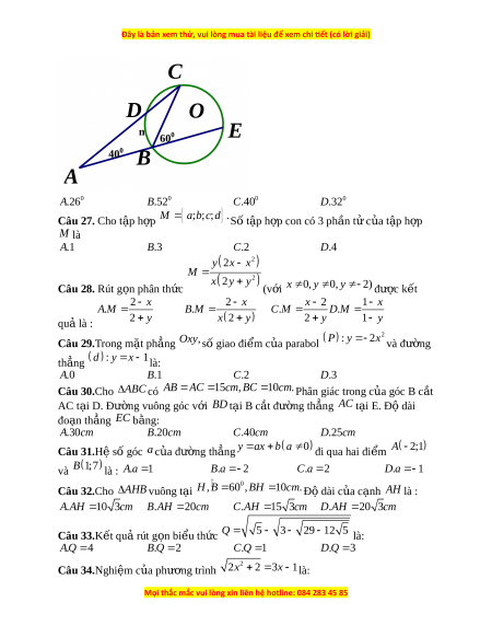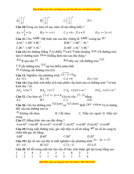 Đây là bản xem thử, vui lòng mua tài liệu để xem chi ết (có lời giải)