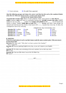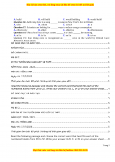 numbered blanks from 28 to 32. Write your answer (A B, C, or D) on your answer sheet......8 Trang 2