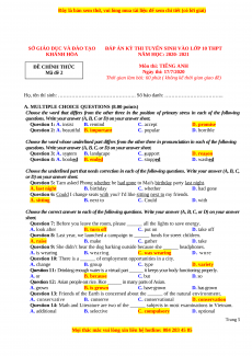 - ĐÁP ÁN KỲ THI TUYỂN SINH VÀO LỚP 10 THPT