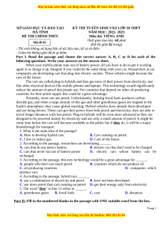 KỲ THI TUYỂN SINH VÀO LỚP 10 THPT HÀ TĨNH NĂM HỌC: 2022- 2023 ĐỀ THI CHÍNH THỨC Môn thi: TIẾNG ANH