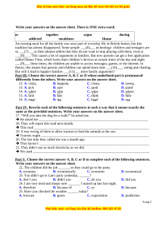 Part II: Fill in the numbered blanks in the passage with ONE suitable word from the box. Trang 4