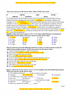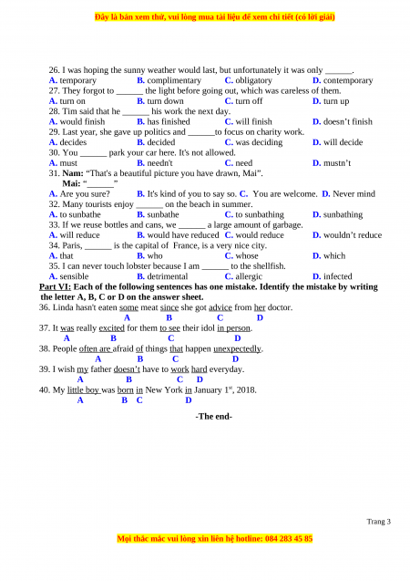 - Thí sinh không sử dụng bất cứ tài liệu nào, kể cả từ điển.
