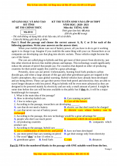 KỲ THI TUYỂN SINH VÀO LỚP 10 THPT HÀ TĨNH NĂM HỌC: 2020- 2021 ĐỀ THI CHÍNH THỨC Môn thi: TIẾNG ANH