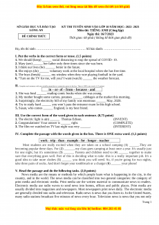 KỲ THI TUYỂN SINH VÀO LỚP 10 NĂM HỌC: 2022- 2023 LONG AN