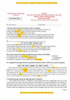 Môn thi: TIẾNG ANH (Công lập) Ngày thi: 16/7/2020 ĐỀ CHÍNH THỨC